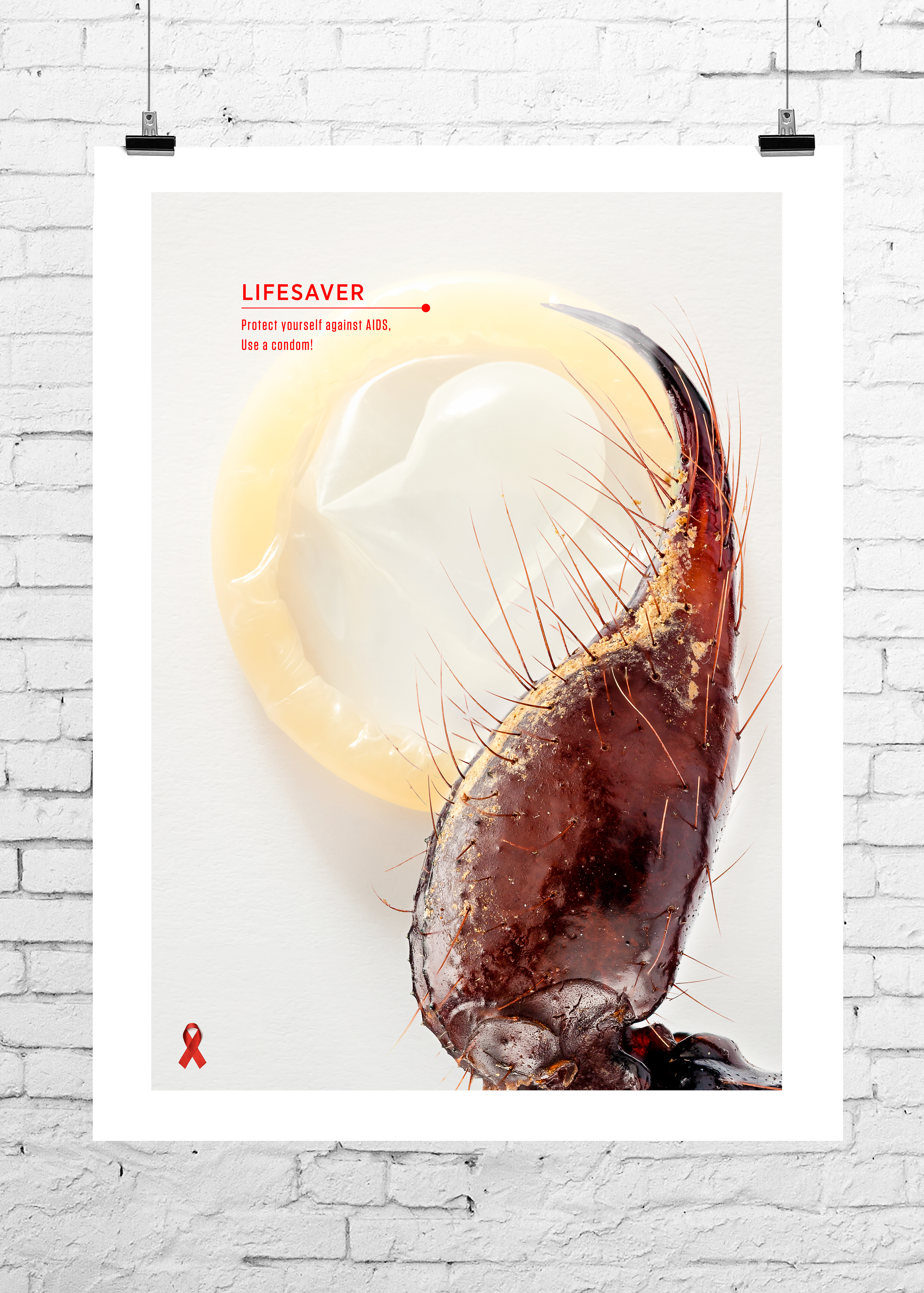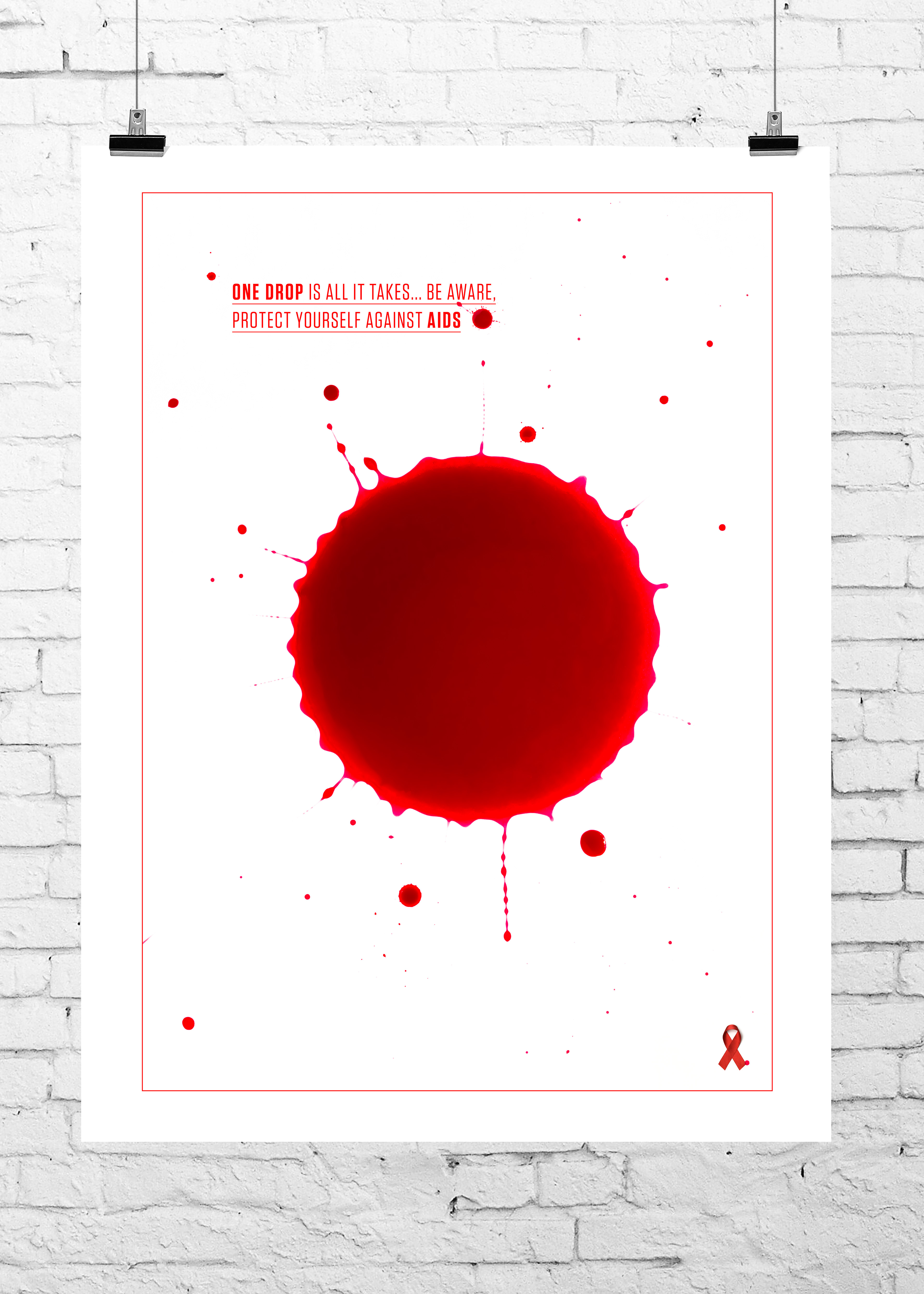This set of posters was created to increase Aids awareness. I chose to use graphic representations of the dangers of Aids. Given the large volume of material out in the world meant to convey the same message, I chose to use non-conventional imagery in order to catch the viewer’s eye while also representing the danger in a quickly digestible set of images. PROJECT OBJECTIVES Design two posters promoting Aids awareness, visually conveying the cause in an innovative manner.