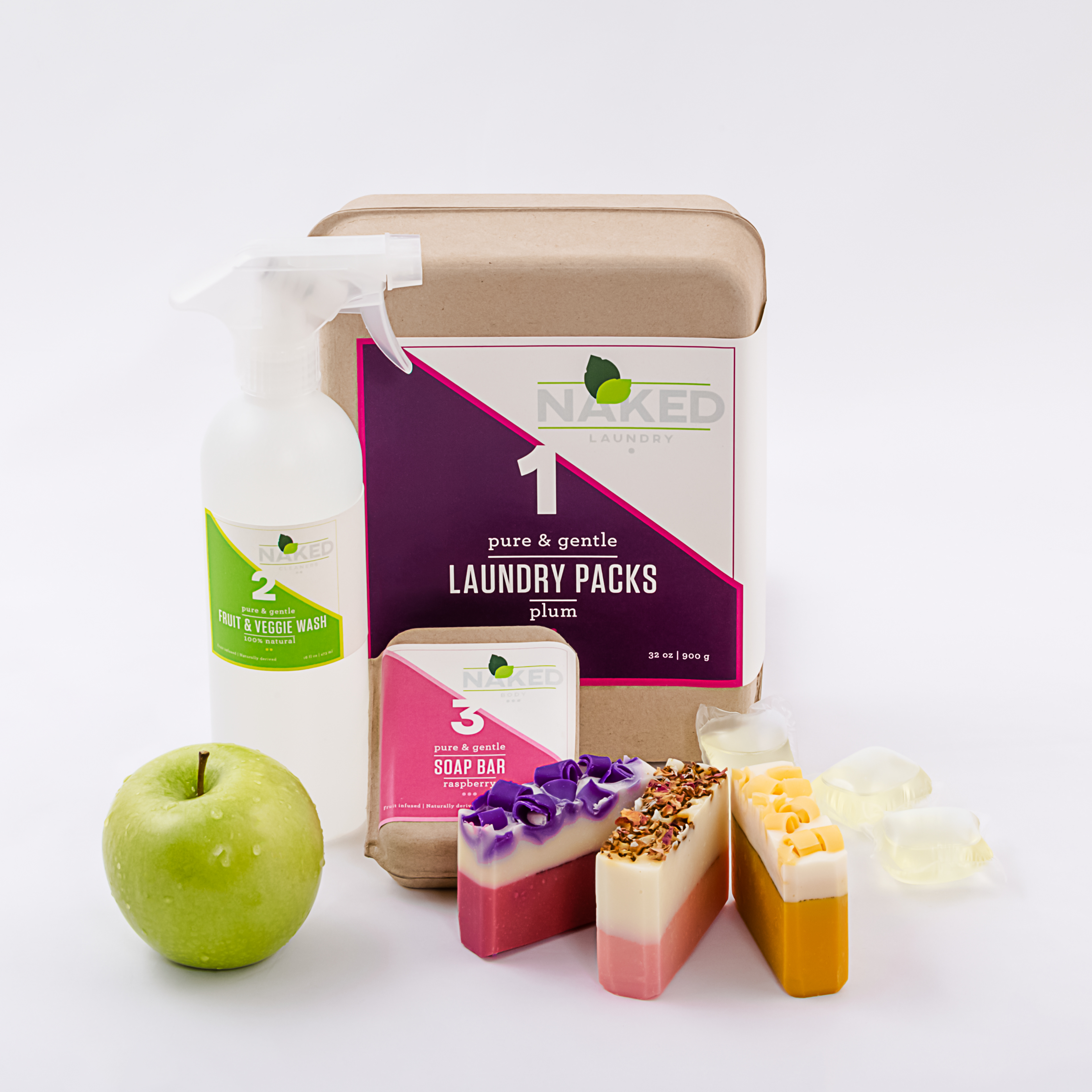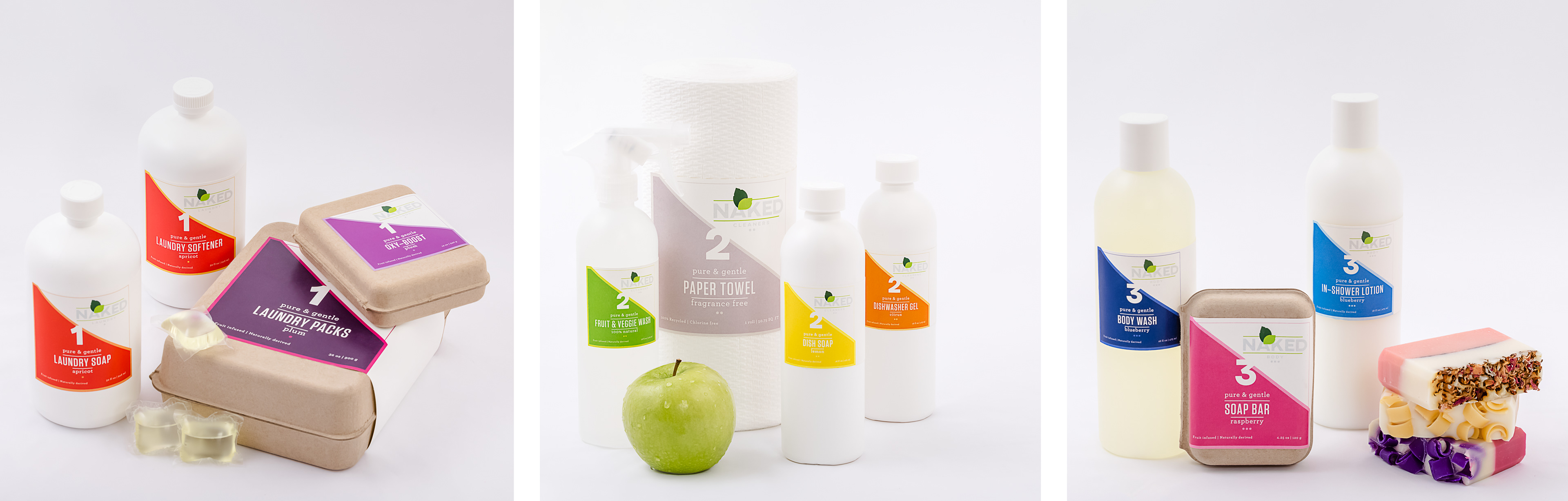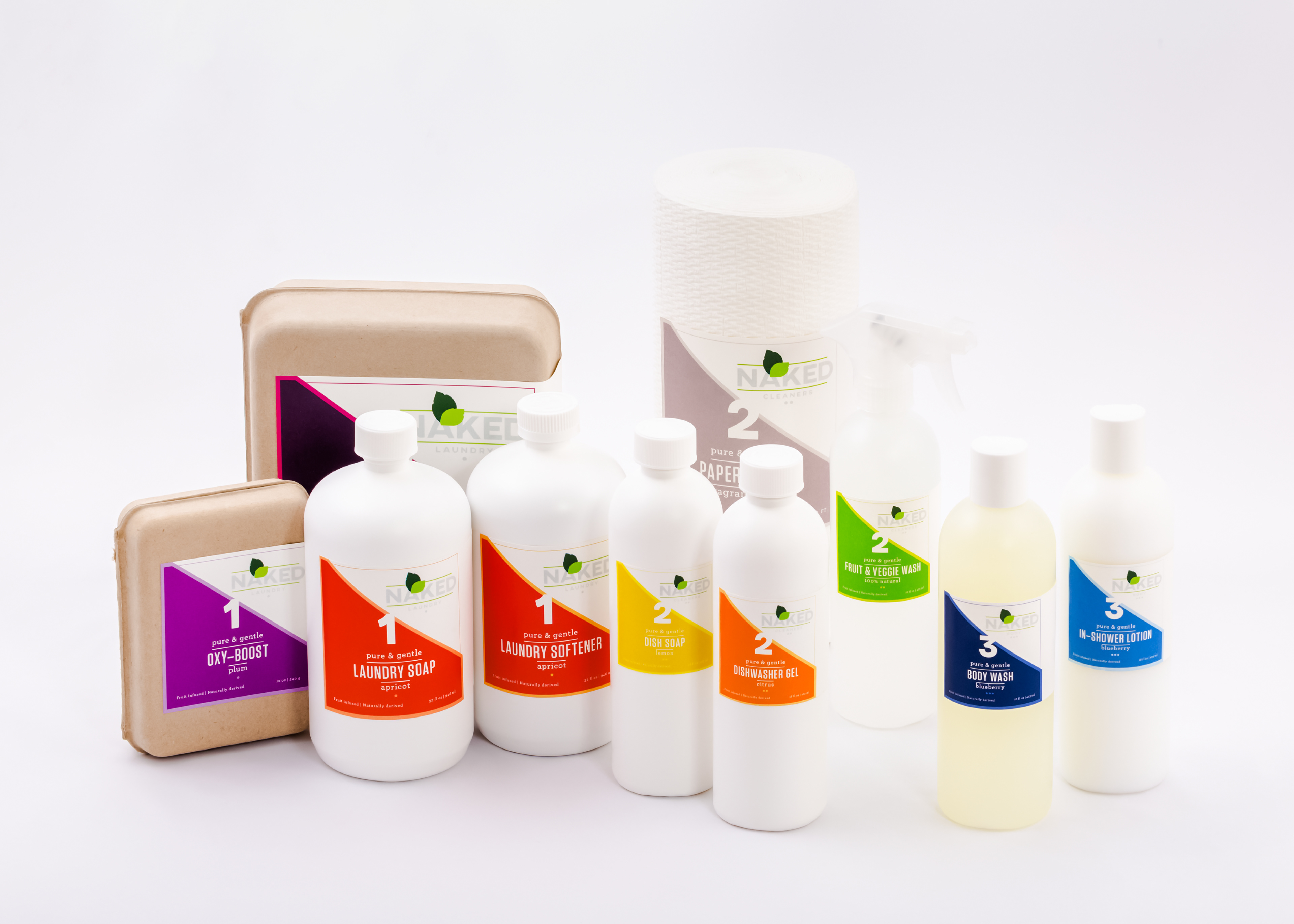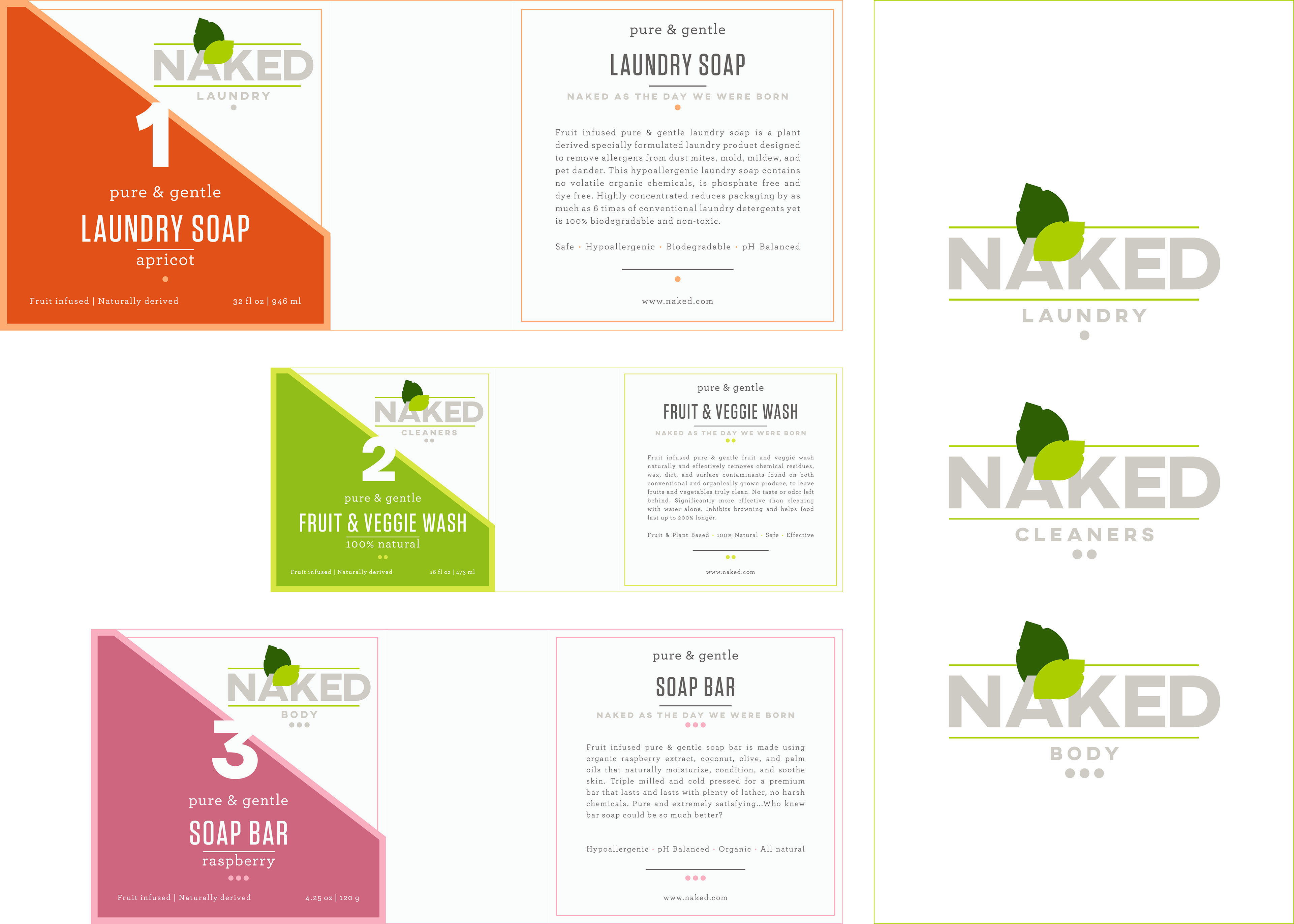 These sustainable package designs were created as an extension to the Naked Juice Co.. This fruit infused line of laundry, household cleansers and personal products convey the core value of the parent brand via the packaging and the products. The labels’ colours reflect the nature of the infused fruit to allow the consumer to more easily differentiate the various products. Each line was also assigned a number to allow the consumer to quickly and easily identify what line each is from. The extension’s logo was inspired by the parent brand’s logo so that it would be easily recognizable as having come from the same company, but was differentiated enough to make it unique to the extension. PROJECT OBJECTIVES Chose a marketed brand and create a brand extension comprised of a collection of earth-friendly laundry, household cleaners, and personal products with a clear emphasis on sustainable packaging.