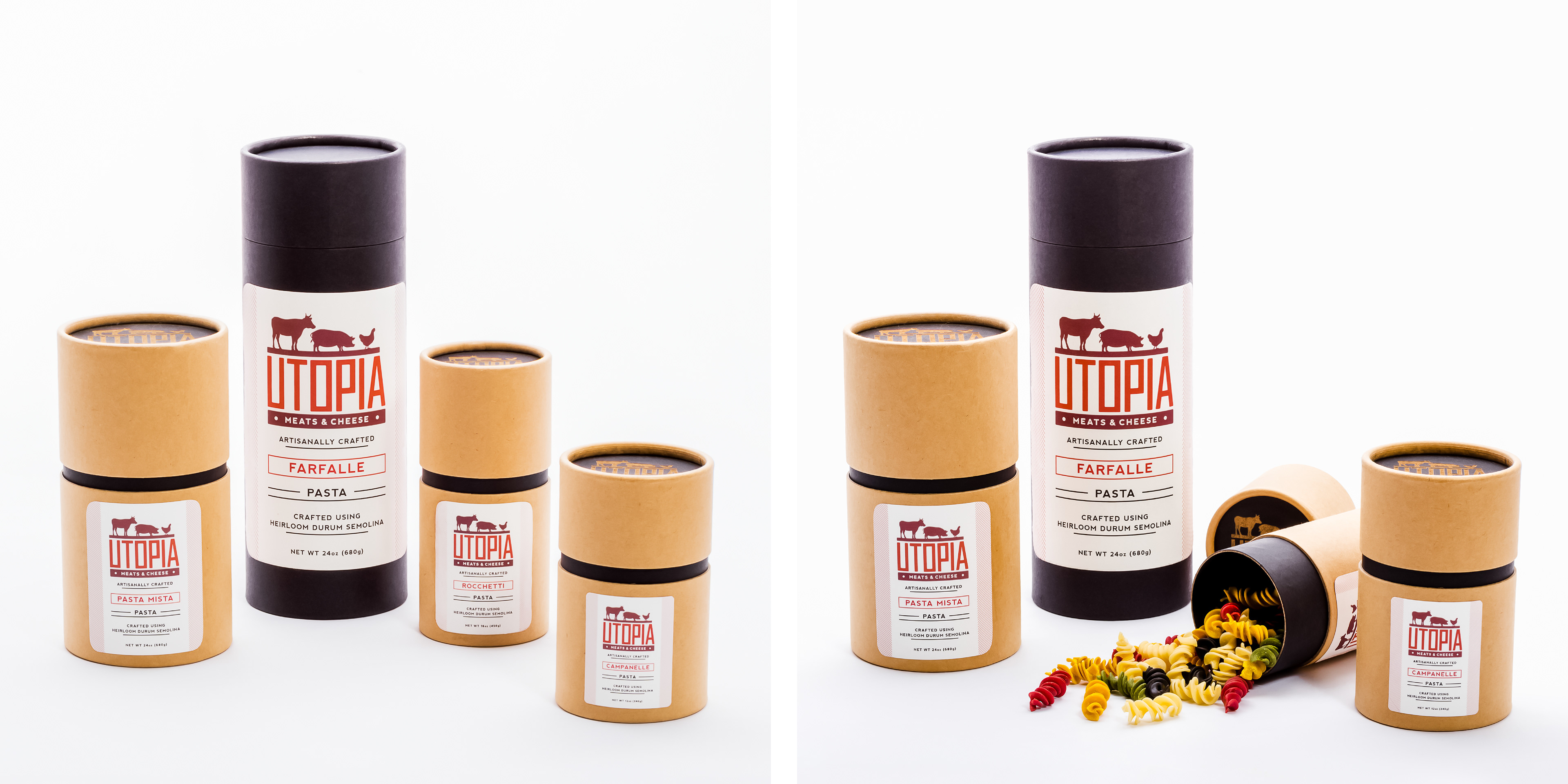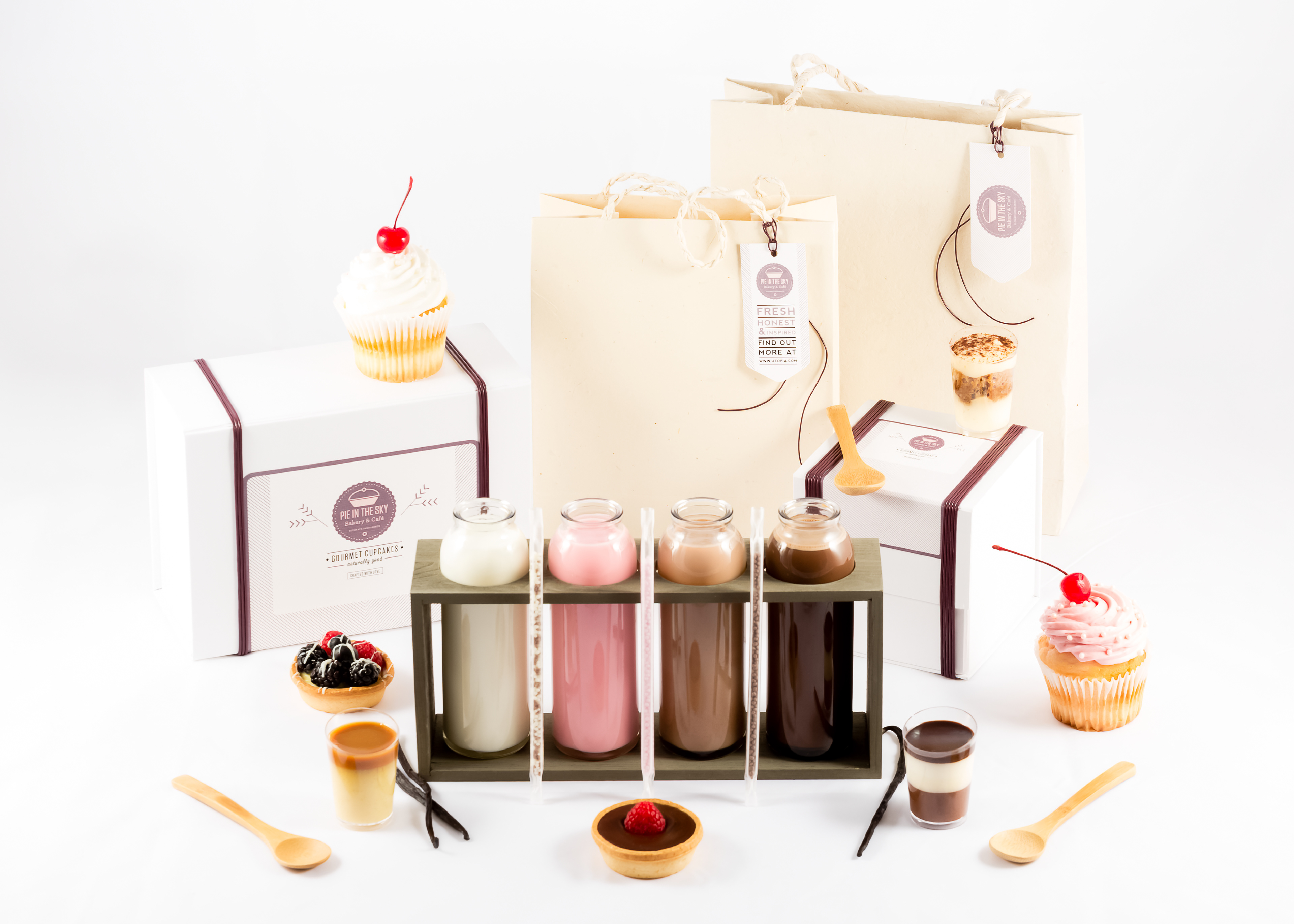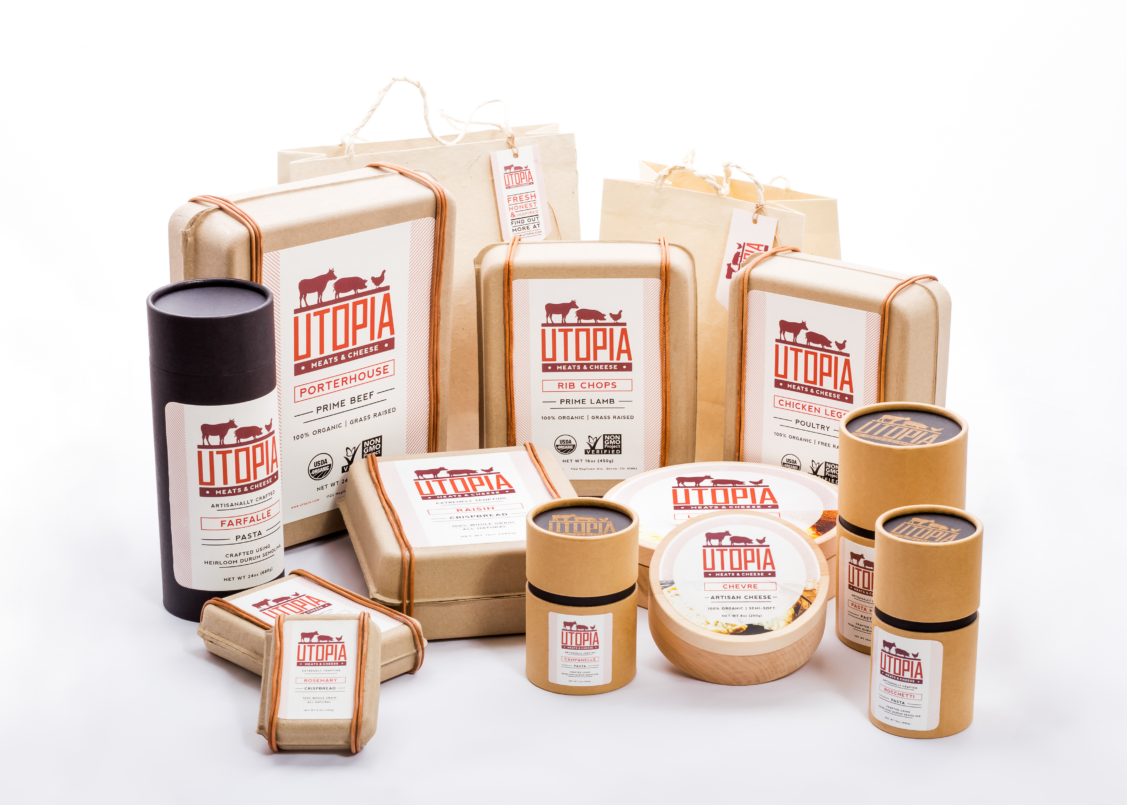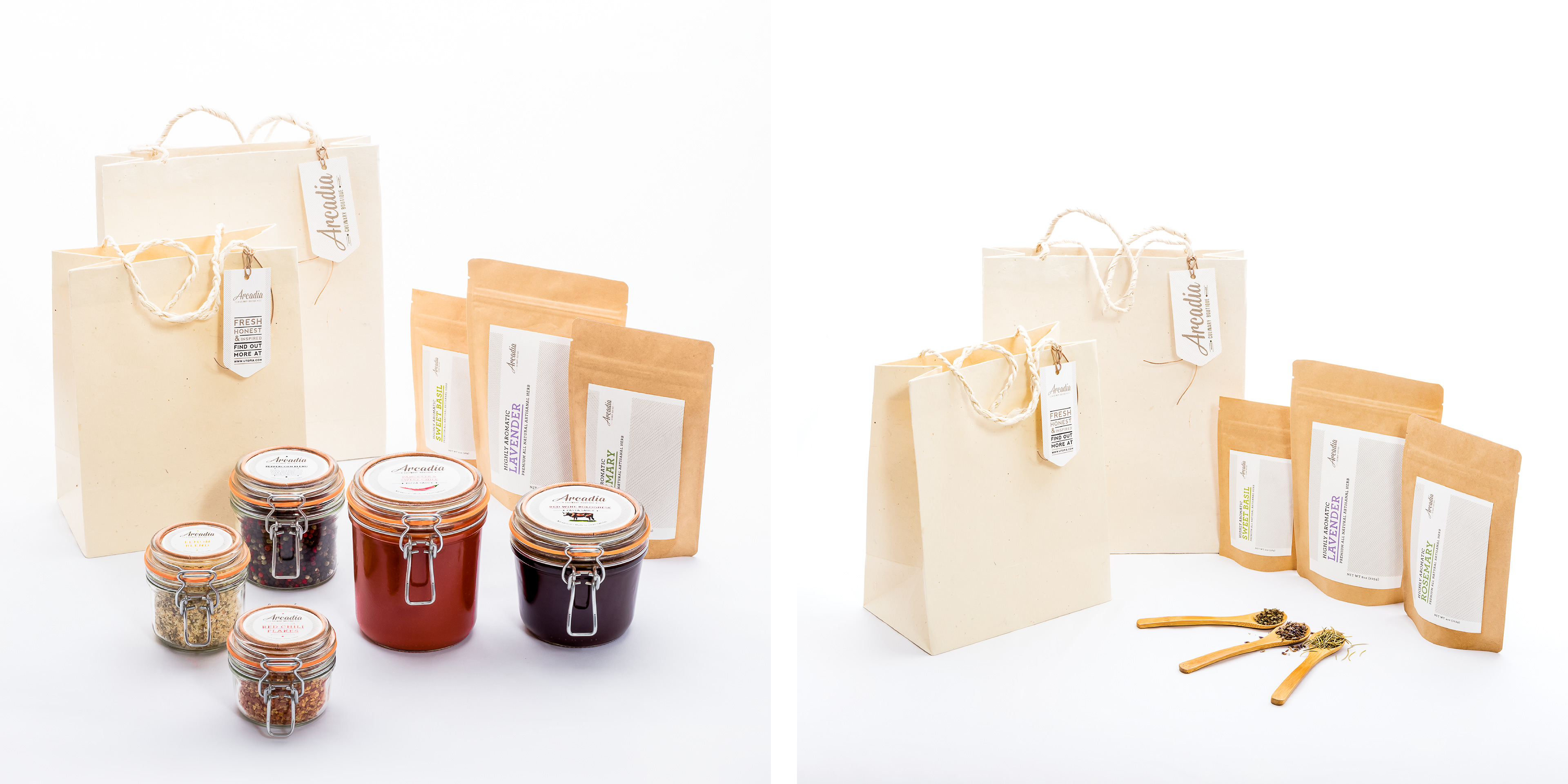 For this project I created a main brand and three brand extensions. House brand: Utopia (Meats & Cheese) Private brands: Arcadia (Culinary Boutique), Pie in the Sky (Bakery & Café), Cloud Nine (Juice Bar & Greengrocer). UTOPIA Is a specialty meat boutique with all organic and extraordinarily fresh meats. Along with the meats there are also cheeses, various pasta, and a variety of crispbreads. The designs and packaging are meant to reflect the exclusivity of the products and to showcase the high level of freshness provided by the brand. ARCADIA The first brand extension to Utopia is Arcadia. For Arcadia I created a line comprised of cookware, kitchen utensils, and a line of spices, rubs and sauces to complement the house brand. The packaging and label designs are made to coordinate, in look and feel, with the main brand. PIE IN THE SKY The second brand extension is Pie in the Sky. For this extension I created a line of gourmet dessert products and a line of organic flavored milk. For this brand’s design I chose to use all white packaging in order to convey the purity of the ingredients and freshness of the product. The label designs coordinate with the parent brand, but I relied on a softer tone to give the design a lighter feel. CLOUD NINE The third and last brand extension to Utopia is Cloud Nine. This extension is comprised of fresh seasonal fruits, vegetables, and freshly pressed juices. Due to the nature of the products they do not have labels or standard packaging, only a branding to be used for multimedia purposes. PROJECT OBJECTIVES Create an entirely new retail store and packaging for an extensive product line, taking in consideration what the company provides, target audience, location, architecture, etc. It includes house and private brands, designed accordingly to their unique selling point.